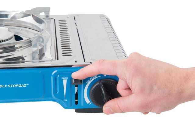 Zum einfachen Transport und zur sicheren Lagerung wird der Einflamm-Gaskocher in einem Kunststoffkoffer geliefert.