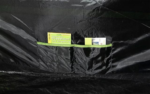Extra starke Reißverschlüsse mit Reißverschluss Abdeckung. Die sehr stabilen 5mm Stahl- Erdnägel verbiegen sich auch bei hartem Untergrund nicht. Die Nähte sind mittels Nahtbandes wasserdicht versiegelt und gewähren eine bessere Naht- Reißfestigkeit. Kabeleingang mittels Reißverschlusses und Kabelführung für Beleuchtung. Abgedunkeltes Innenzelt mit Vario Vent Control System. 2 Moskitonetz- Eingänge halten lästige Plagegeister fern und kann bequem von innen je nach Klima variabel bedient werden. Mit einer Reißschluss- Trennwand lässt sich das Innenzelt in eine große Kabine oder 2 Schlafbereiche aufteilten. 5 Praktische Organizer und 5 Innenzelttaschen für Utensilien. 2 Lampenhalter für Campingleuchten runden den Komfort ab. Das Garda 5.0 bietet für 5 Personen mit Camping Ausrüstung ausreichend Platz. Bestens geeignet für den Camping Urlaub.