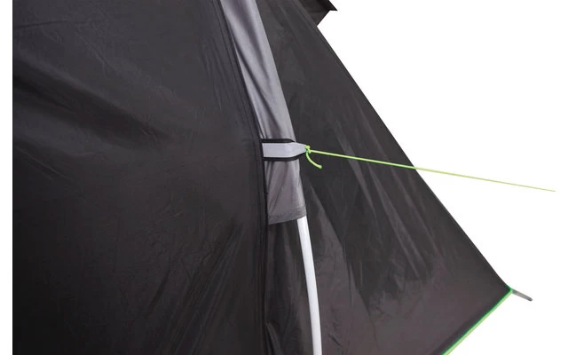 Windstabiles Vis a Vis Tunnelzelt mit 4000 mm Wassersäule bietet Raum für 4 Personen. Gegenüberliegende Schlafkabinen für das eigene Reich der Kinder oder wenn Freunde zu Besuch kommen. Tagsüber kann ein Innenzelt ausgehängt werden um den Wohnraum zu vergrößern. Ideal bei schlechtem Wetter. Die Eingänge mit Moskitotüren bieten optimale Belüftung und Insektenschutz. Kleine Campingutensilien sind in den 8 Organizer schnell verstaut und griffbereit. Lampenhalter und 4 Innenzeltaschen runden die Ausstattung ab. Der Wohnraum hat Lichtquellenfenster und einen separaten, pflegeleichten Zeitboden. Der Eingang kann als Sonnendach aufgestellt werden und spendet Schatten an heißen Tagen.