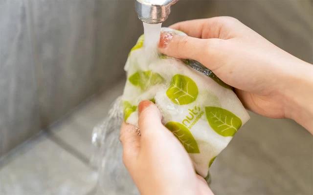 - Leicht verschmutzte Tücher kann man einfach mit Wasser spülen.