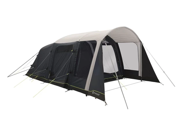 Das leicht aufzubauende Luftzelt Outwell Springville 4SA im zwanglosen skandinavischen Design besticht durch seine schlanke Form, seine klaren Linien und sein innovatives Outtex 6000 Endurance RS-Gewebe mit überragender Reißfestigkeit und Widerstandsfähigkeit. Das tiefe Vordach bietet Schatten und Schutz vor den Elementen und eignet sich hervorragend für Aktivurlaube und Kurztrips zu jeder Jahreszeit. Mit viel Stehhöhe genießen Sie das geräumige Gefühl eines voll ausgestatteten Zeltes, das Ihnen Komfort wie zu Hause bietet. Es bietet Platz für vier Personen und ist ideal für kleinere Familien oder Paare, die mehr Platz wünschen. Ein großartiges Design, das Ihnen hilft, sich mit der Natur zu verbinden und gemeinsam zu entspannen. Wenn Sie die Vordertür für ein Panorama-Erlebnis aufrollen, können Sie sich die freie Natur nach drinnen holen.