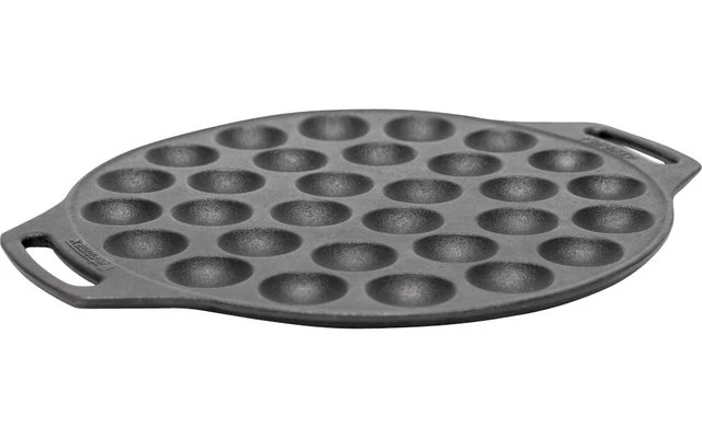 Für Abenteuergeschmack in mundgerechten Portionen: Die Poffertjespfanne verhilft dir zu einem außergewöhnlichen Dessert am Lagerfeuer und begeistert gerade den Nachwuchs in der Runde. Mit der Sonderform aus Gusseisen bäckst du 30 Stück der niederländischen Mini-Pfannkuchen gleichzeitig und in kürzester Zeit aus. Die ausgezeichnete Wärmeleitfähigkeit der Poffertjespfanne aus Gusseisen sorgt zusätzlich für ein gleichmäßiges Backergebnis.