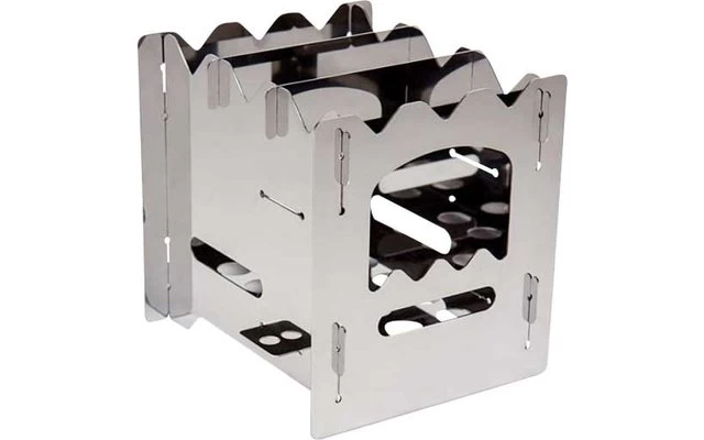 Die wohl durchdachte Bauweise des Petromax bk1 führt zu einem Kamineffekt, der Zweige und Äste sparsam, aber dennoch enorm heiß verbrennt. Je nachdem in welcher Höhe du den Bodenrost einsetzt, wählst du das Brennmaterial: Sitzt der Rost des bk1 unten, eignen sich Reisig, Zweige oder kleine Äste, die du einfach durch die großzügige Öffnung nachschiebst. In der oberen Position eingesteckt funktioniert dein Hobo-Kocher auch mit einem Trockenbrennstoff-Würfel oder einem Spiritus-Brenner.