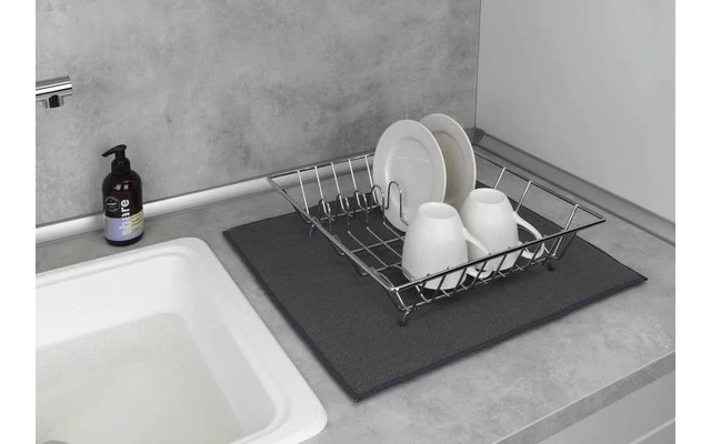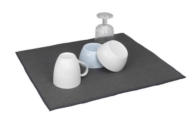 Legen Sie nach dem Abwasch einfach das nasse Geschirr auf Ihre neue Matte. Die saugfähige Mikrofaser nimmt das Wasser auf.